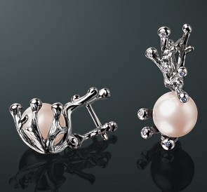 Жемчуг 10 - 10.5 мм, пресноводный , золото 585° , бриллианты