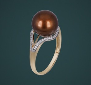 Жемчуг 10.5 - 11 мм, морской , золото 585° , бриллианты
