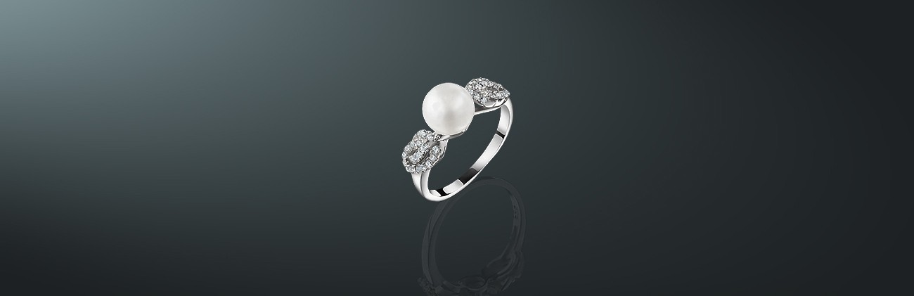 Кольцо из серии MAYSAKU ARGENTO: пресноводный жемчуг кабошон, родированное серебро 925˚, цирконы, государственное пробирное клеймо. Средний вес изделия 2,67 г.