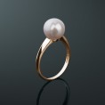 Золотое кольцо с жемчугом AKOYA к-110627: белый морской жемчуг, золото 585°
