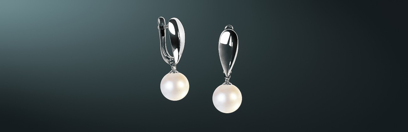 Золотые серьги с жемчугом с-240630: белый пресноводный жемчуг, золото 585°