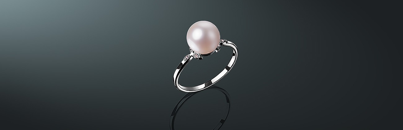 Кольцо с белым пресноводным жемчугом класса ААА, золото 585˚, 6 бесцветных сапфиров (0,036ct), государственное пробирное клеймо. Средний вес изделия 2,4 г.