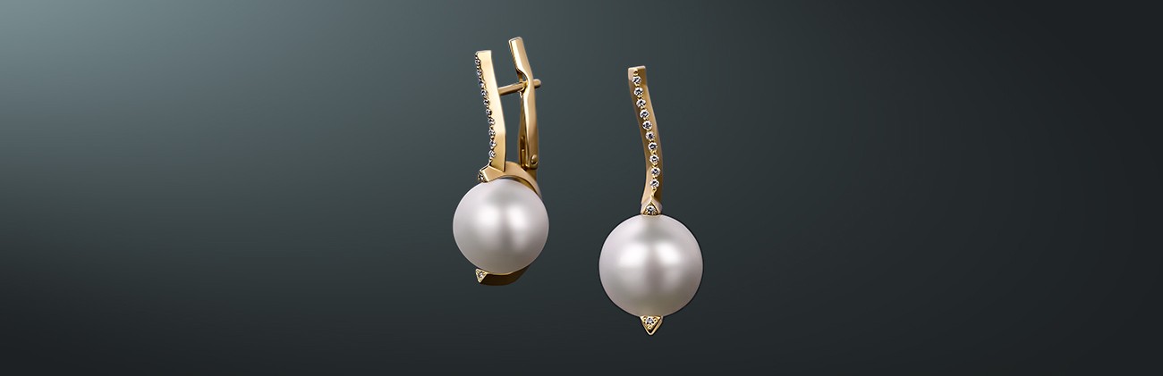Серьги из коллекции MAYSAKU: жемчуг Южных морей, золото 585˚, 24 бриллианта (0,119 ct), государственное пробирное клеймо. Вес изделия 8,13 г.